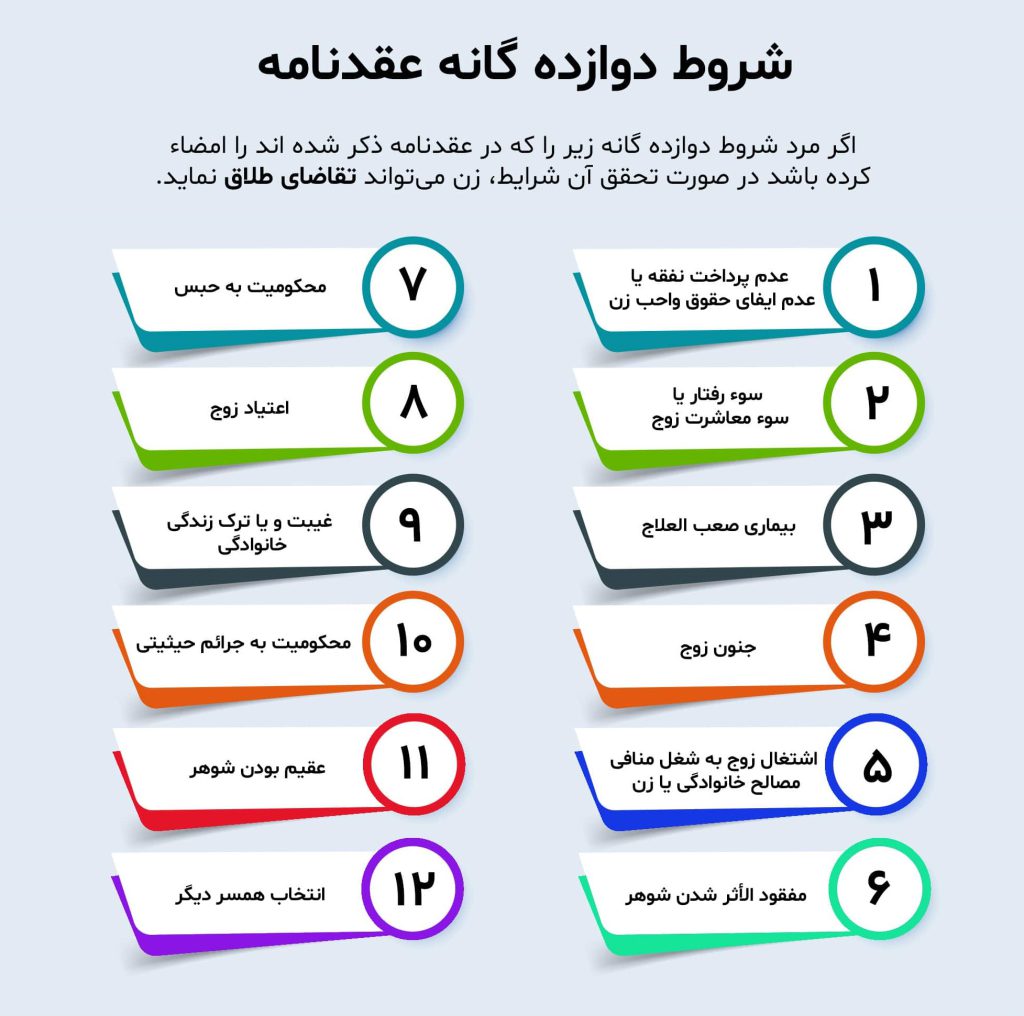 شرایط ضمن عقد ازدواج شرایط ضمن عقد ازدواج مجموعهای از شروطی است که زوجین میتوانند قبل یا هنگام عقد نکاح آنها را تعیین کرده و با امضا، آنها را الزامآور کنند. این شروط، تحت نظارت ماده ۱۱۱۹ قانون مدنی ایران به رسمیت شناخته شدهاند و باید با شرایط قانونی و شرعی سازگار باشند. شروط باید […]
